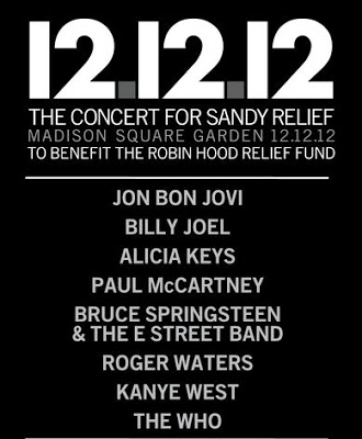 The so-called 12-12-12 concert at Madison Square Garden will feature performances by Paul McCartney, Bruce Springsteen, Billy Joel, Kanye West, The Who, Alicia Keys, Jon Bon Jovi and Roger Waters, all of whom have ties to America’s East Coast.