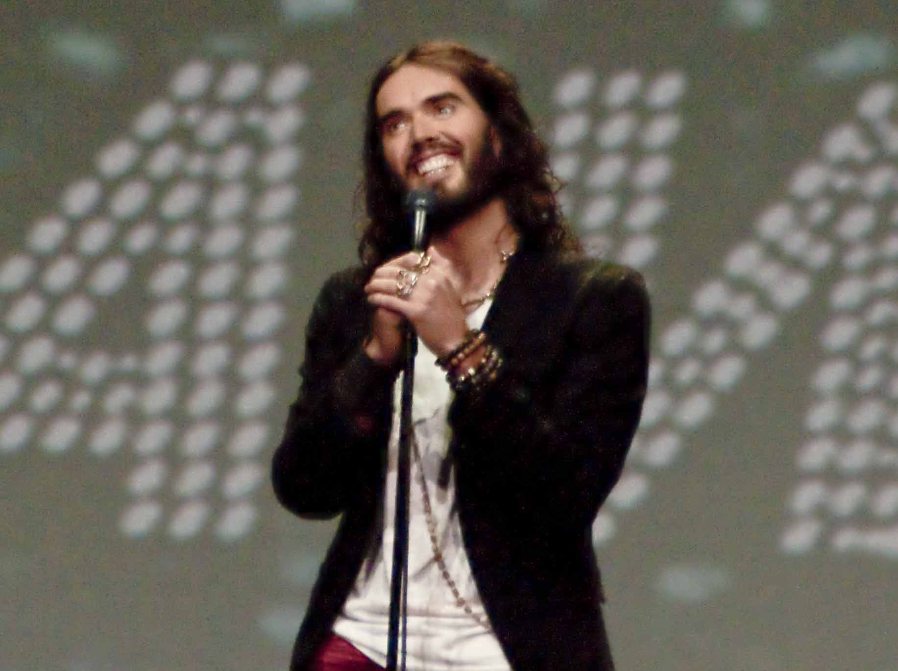 The show commences with a montage of TV snippets of Brand projected onto a large screen, featuring a prominent scene showing Brand atop a bus singing the Beatles’ “I am the Walrus” at the London Olympics closing ceremony. It explains the inspiration for the title of his show, but Brand is quick to point out the distinction between it and the Beatles’ psychedelic masterpiece.